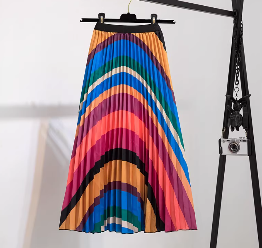 Multicoloured Printed Pleated Skirt