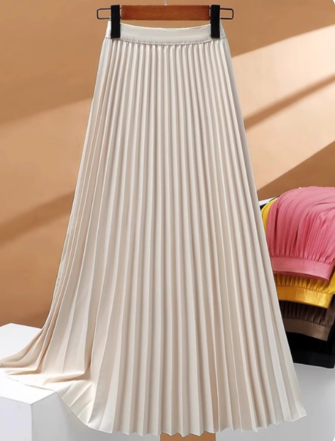 Solid Colour Pleated Skirt, Off white